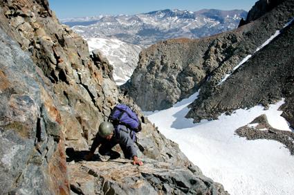 There were a couple of sections where we were forced off route and ended up doing a bit of class 4 climbing. This was due to the fact that we had a lot of snow that year we climbed Mt Ritter (as mentioned at the beginning of this page), and it was a good thing that we had a rope available to protect those sections. Even with class 3, it never hurts to have a rope along. It is very easy to get off course mountaineering, and having a rope along gives you that much needed extra margin of safety.